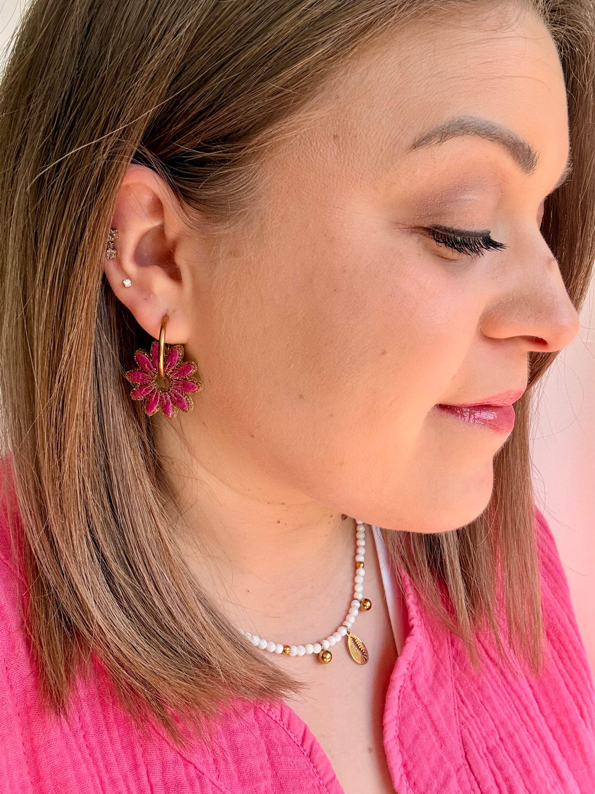 Une petite fille très contente avec ses 2 paires de boucles d’oreilles. En plus, assez facile d’enlever et à remettre toute seule! Je recommanderai sûrement de nouvelles pampilles.