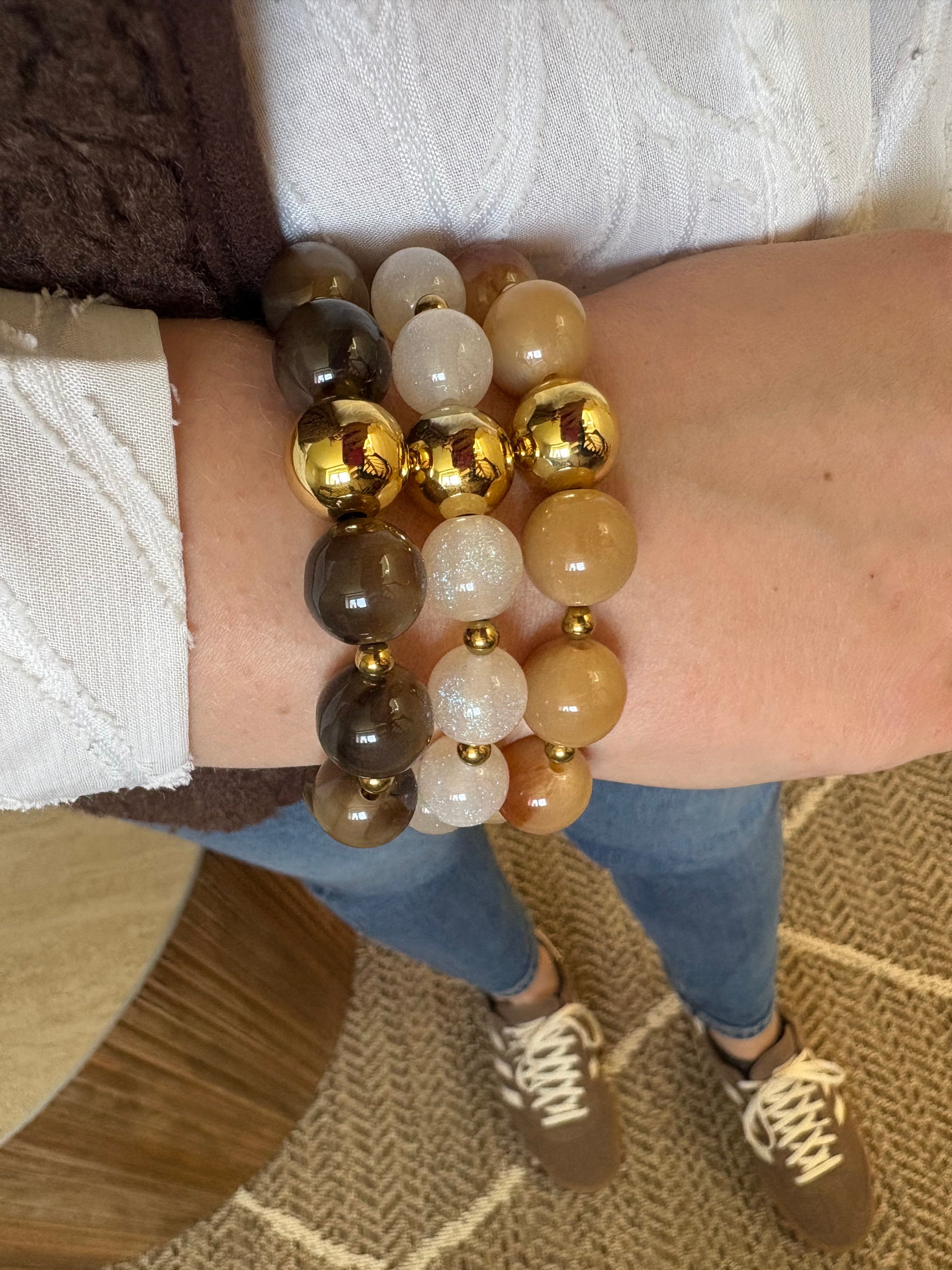 - Marron foncé, Camel, Beige sable (perles en résine)